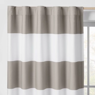 Make sure your kiddo enjoys a peaceful sleep with the Blackout Rugby Stripe Panel from Pillowfort™. This lined blackout curtain panel not only helps prevent morning sunshine or bright afternoon light from seeping into their room, but it also helps block outside noise to let them enjoy their sleep or nap. Plus, it also prevents harmful UV rays from filtering through their window. Designed with hidden loops at the back that slip over the curtain rod to create soft pleats, it features a rod pocket that allows for easy hanging. Seamlessly blends with their room decor to help you create a peaceful haven for them.