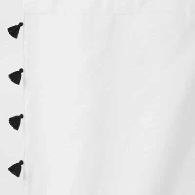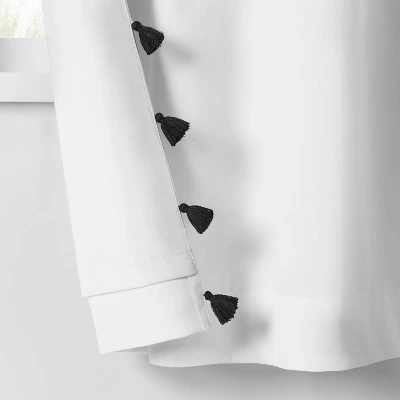 Block out unwanted light in your child’s bedroom in a fun way with this Blackout Tassel Curtain Panel from Pillowfort™. This blackout curtain panel brings decorative and functional style to their space. It’s detailed with tassel accents on the edging for a playful pop of texture, and the lined construction blocks out most of the sunlight to provide your child a peaceful sleeping environment. Plus, it gives privacy and helps in noise reduction. The classic rod pocket along with a button back tab allows for easy and secure installation. Just fit on a standard rod to complete their window decor.