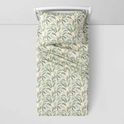 Bring a touch of nature to your child’s’ room with this Botanical Cotton Sheet Set from Pillowfort™. This printed sheet set includes one fitted sheet, one flat sheet and one pillowcase, each made from 100% cotton percale with a peached finish for soft feel and smooth finish. Showcasing an allover print of different leaves in shades of green and yellow, this decorative sheet set brings welcoming charm to their room decor. Machine-washable for easy care and cleaning, you can mix and match this botanical-print bedding set with a solid or printed comforter, contrasting pillow shams and stuffed pillow buddies to create a colorful, relaxing haven for your child.