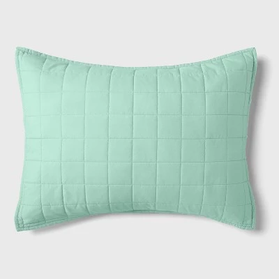 Liven up the look of your kiddo’s bedding with the Box-Stitch Microfiber Sham from Pillowfort™. This pillow sham is adorned with an allover box-stitch quilt pattern for an eye-catching look, and features a complementing solid surface on the opposite side for added versatility. In a refreshing shade of mint, this rectangular pillowcase is made from a brushed, microfiber fabric to provide an ultra-soft surface for your child to rest their head upon. This decorative pillow sham has a four-inch envelope closure to keep the pillow insert tucked in with a neat finish, while still allowing easy removal for cleaning. Plus, the sham is machine-washable for easy care and maintenance.