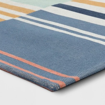 Add a touch of color to your kiddo’s room with this Broken Striped Rug from Pillowfort™. Woven from soft cotton-blend fabric, this area rug feels soft underneath their feet and gives them a place to sit on the floor, while the low-pile construction makes it easy to clean. Showcasing a broken striped pattern in multicolor hues, it makes a great addition to their bedroom or playroom.