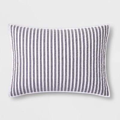 - Chambray striped sham adds sweet style to their bedroom