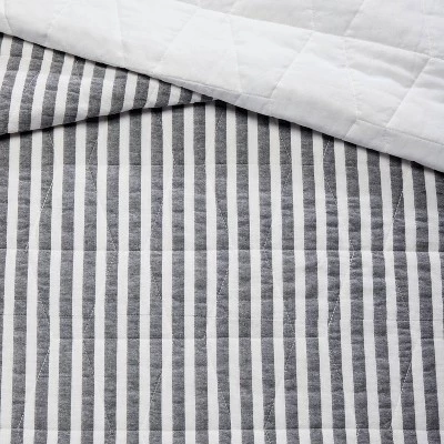 You’ll love the simple style update this Striped Chambray Quilt from Pillowfort™ brings to their room. Made from 100% cotton and pre-washed for softness, this kids decorative quilt feels soft to the touch and helps them stay cozy and comfy as they read a book or catch some Z’s. Plus, you can simply toss it in the washing machine for a quick refresh whenever required. Adorned with vertical gray and white stripes with soft contrast edging, you can easily mix and match with various sheets, bedskirts and pillows of your choice to create a cozy resting haven for them.