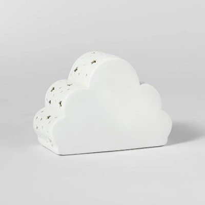Help your little one find their way during nighttime while creating a comfier space with this Cloud Ceramic Night Light from Pillowfort™. This cute ceramic night light is both decorative and functional. Designed to give a soft comforting glow, it features a white cloud shape for a fun and playful look. The star cutouts on top allow the light to pass through, while the 1-way switch ensures easy function. Plus, the night lamp has a portable design — simply it in your child’s bedroom, playroom or bathroom for soft lighting.
