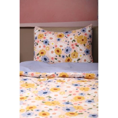 Transform the look and feel of your kiddo’s room with this Floral-Print Duvet Cover Set from Pillowfort™. This decorative bedding set includes one duvet cover and a matching sham, both made from 100% cotton for comfortable year-round use. Adorned with an allover print of florals in multicolored hues on a peach background, this printed duvet cover and sham bring welcoming charm to their room decor. Coordinate the set with decorative pillows and printed sheets of your choice to complete their bedding ensemble.
