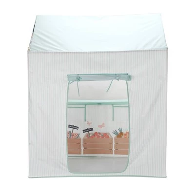 Keep your kiddo engaged for hours with the Garden Market Pop-Up Playhouse from Pillowfort™. This pop-up playhouse is designed as a market garden with illustrations of colorful fruit, flower and vegetable carts for sale on the front, and a canopy accented with allover flower, fruit and veggie prints to transform their playroom or the family living room into a bustling market garden. Easy to set up, this pop-up playhouse features a back entrance and a large front window with ties to encourage role play and imaginative thinking for activities that help them learn.