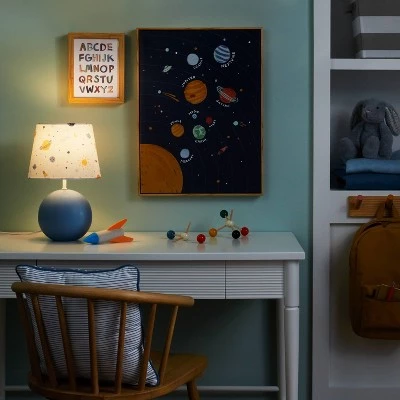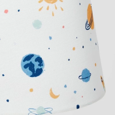 Illuminate your kid’s room in exciting style with this Round Base with Space Shade from Pillowfort™. This space-themed ceramic table lamp makes a fun lighting accent in their bedroom decor. It includes a blue rounded base and a white drum shade with a colorful print of planets, spaceship, moon and sun for an exciting space-inspired flair. Plus, the 1-way on/off switch makes for easy operation. Just place it on their bedside, study desk or dresser for a cute look your child will love.