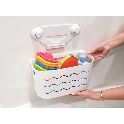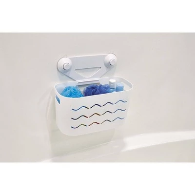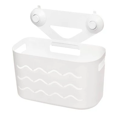 Make bathtime more organized for your kiddo with this Shower Caddy from Pillowfort™. This shower caddy offers convenient storage space for your little one’s shampoo and conditioner bottles, body wash, bubble bath, soaps and more. Its versatile design is also great for keeping their favorite bath toys within reach, while making it easy to scoop out the toys out of the water with the integrated handle. The fun wave pattern on the front allows water to drain through and provide air flow for quick drying of items. Complete with push-lock suction cups for a secure hold on glass and tile, this white shower caddy helps them maintain a neat bath space they’ll love.