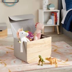 Add a stylish storage option to your kid’s space with the Large Natural Wood Rectangular Storage with Lid from Pillowfort™. This natural wood storage features a rectangular shape with clean lines and curved sides at the bottom for a stylish look. It comes with a gray lid to help keep the contents hidden, while the cutout handle make it easy to move. Simply place the storage container on the floor to help keep kids’ stuff within reach.