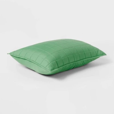 Add a textured look to your kiddo’s bed with this Microfiber Sham from Pillowfort™. This pillow sham is designed with a box-stitched quilting pattern in light green and is made of microfiber fabric for a soft hand feel. It has an envelope closure for easy insertion and removal of the pillow and is machine-washable for easy cleaning.