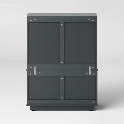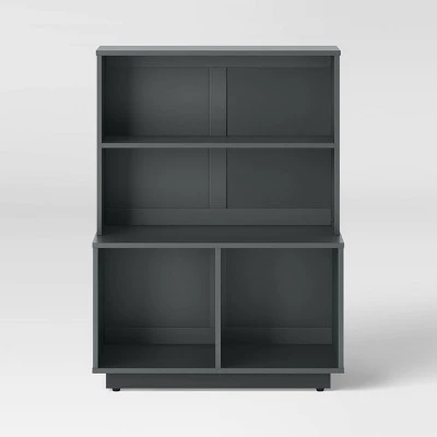 Freshen up your kid’s room decor with the Modern Modular Bookcase from Pillowfort™. This dark gray Montessori-style bookcase features a shelf and open cabinets to provide ample space for organization of their books, storage bins and more, and provides a perfect spot for studying. Made with wood, this modern bookcase works well as a study desk, offering plenty of space for their books or snacks by the side.