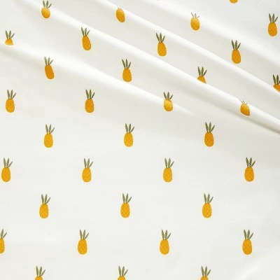 Bring fruity freshness to your kiddo’s bed with the Pineapple Cotton Sheet Set from Pillowfort™. Made of a peached-finish, 100% cotton fabric, this printed bedsheet set is decked out in a refreshing pineapple print in golden yellow and green against a solid cream backdrop that brings a dash of cheerful flair to their room. Perfect for year-round use, this fruit-printed sheet set comes with a fitted sheet, flat sheet and matching pillowcase(s) for a complete look. The fully elastic fitted sheet is suitable for mattresses up to 16 inches deep to ensure a snug, secure fit and create a smooth, soft surface for your child to lie on. Machine-washable for easy care and cleaning, this pineapple-printed bedding set is perfect for everyday use — add a solid or printed coverlet or comforter, and complete the look with cute fruit-shaped stuffed pillow buddies.