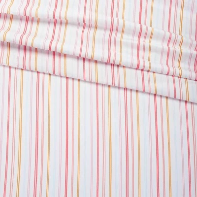 - Colorful striped print on white base lends a cheerful look