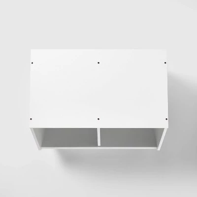 This Stackable Laminate 2-Compartment Bin from Pillowfortâ„¢ is perfect for keeping a kid’s bedroom, entryway or any other space in your home organized and clutter-free. This stackable bin features 2 compartments and a top shelf that holds up to 25 pounds, and the solid white color matches easily with existing home decor. Adult assembly is required for this 2-compartment bin, and all necessary tools are provided for your convenience.