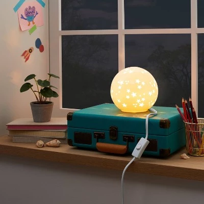 Bring the beauty of the night sky into your little one’s room with the Starry Globe Nightlight from Pillowfort™. This globe nightlight features star-shaped cutouts that, when lit, cast glowing stars on nearby surfaces for a beautiful, hypnotic effect. Perfect for comforting children who are afraid of the dark, this nightlight also provides a lovely decorative accent for their bedroom.