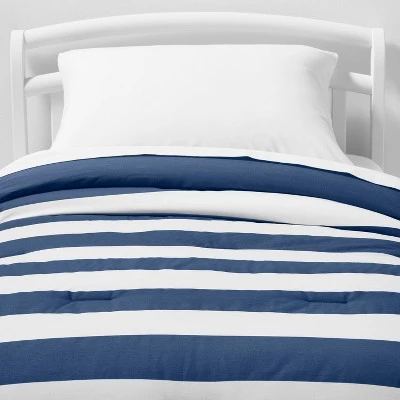 Instantly brighten their room decor with the Toddler Rugby Striped Cotton Comforter from Pillowfort™. This comforter features rugby stripes for a simple and clean look that’s sure to blend in with a variety of decor styles. The 100% cotton shell ensures soft, comfortable year-round use, while the cozy comforter with fill adds a layer of warmth to the top of their bed. Add solid sheets and other bedding pieces to complete their bedding ensemble, and machine wash for easy care.
