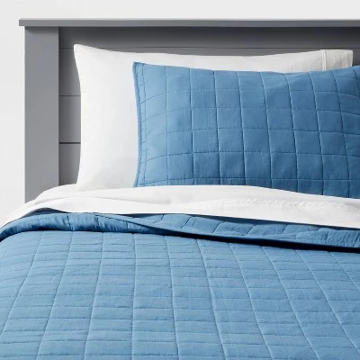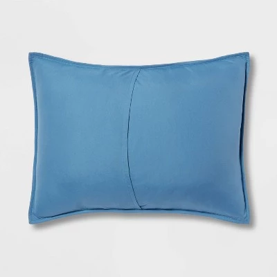 Give a peaceful makeover to your kid’s bedding with the Bergen Blue Value Sham from Pillowfort™. This pillow sham is adorned with an allover box-stitch quilt pattern for an eye-catching look, and features a complementary solid surface on the opposite side for added versatility. In a refreshing shade of light blue, this rectangular pillowcase is made from microfiber fabric to provide an ultra-soft surface for your child to rest their head upon. This decorative pillow sham has a four-inch envelope closure to keep the pillow insert tucked in neatly, while still allowing easy removal for cleaning. Plus, the sham is machine-washable for easy care and maintenance.
