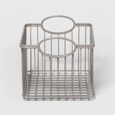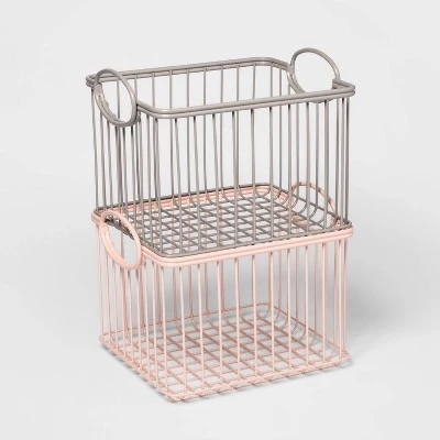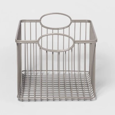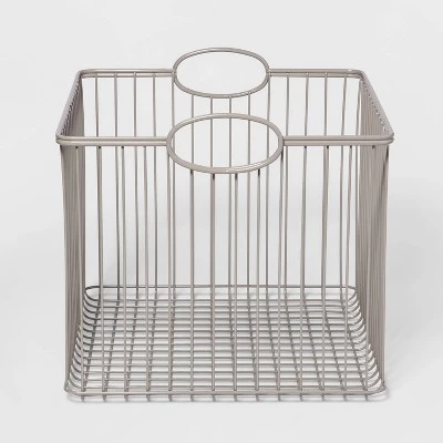 Add simple organization style to your kid’s space with this Wire Storage Basket from Pillowfort™. Made with metal, this storage basket showcases a wired design that helps them easily see the contents. It comes with an open top for easy access to the items, while the built-in oval handles make it easy to move around spaces. Perfect to fit in a shelf or to place on the floor with the flat bottom, this gray storage basket provides ample space for their toys, accessories and other items to help keep their room neat and tidy.